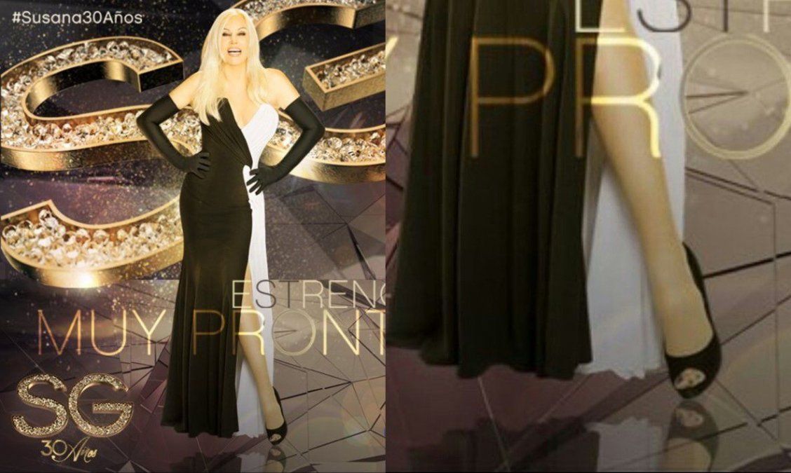 Hace unos años el Photoshop le hizo desaparecer el ombligo. Ahora se les olvidó poner una pierna en el aviso que promociona la llegada de Susana Giménez a la televisión.