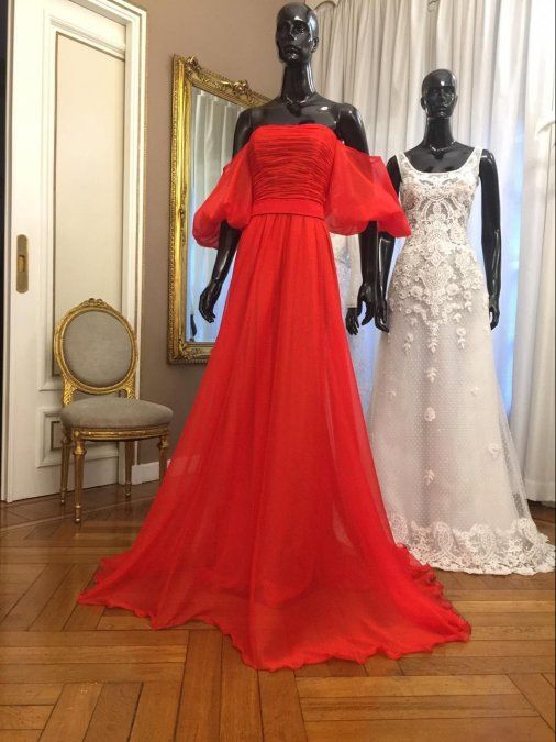 Retratada por Gabriel Machado, la diva de los teléfonos lució un vestido de gasa de seda natural rojo con bustier drapeado y falda campana plato con transparencias diseñado exclusivamente por Claudio Cosano para esta ocasión.