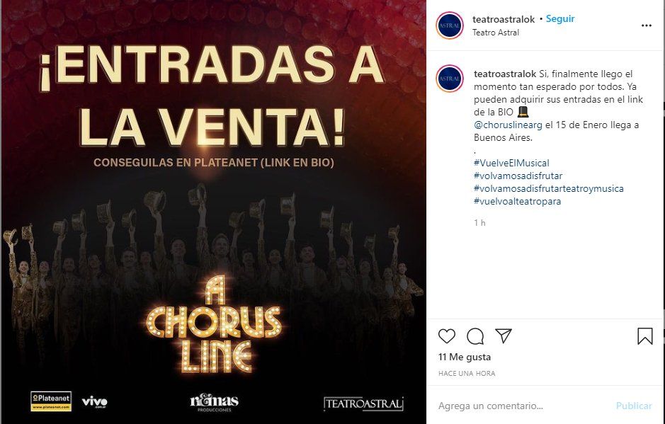 “A Chorus Line ”, el multipremiado musical de Broadway se reestrenará el próximo 15 de enero a las 21 en el teatro Astral. La dirección general es responsabilidad de Ricky Pashkus y la adaptación de Fernando Masllorens y Federico González Del Pino.