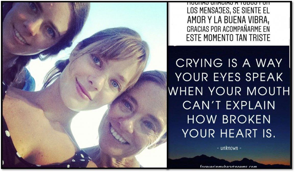 "Llorar es una manera en la que tus ojos hablan cuando tu boca no puede expresar cuan roto está tu corazón", escribió una de las hermanas de Geñi, quien falleció ayer a los 34 años tras estar internada por tres tumores en la cabeza, ramificación de un anterior cáncer de mama.