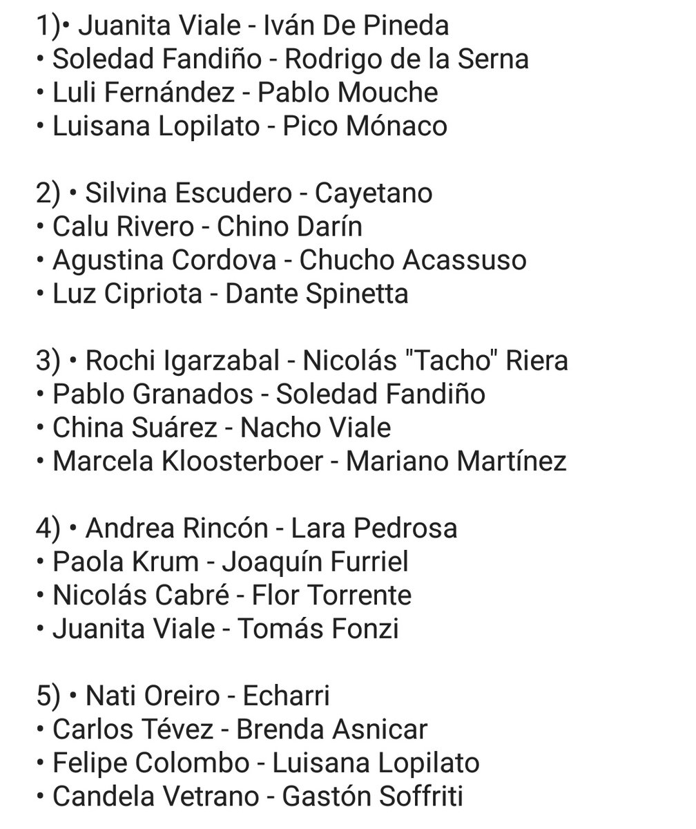 Luego de dejar esa lista, la chica que creó el hilo continuó hablando de otros noviazgos bastante raros, como el de Panam con Juan Sebastián Verón, Cecilia Roth con Gonzalo Heredia, Nancy Duplaá con Matías Martin, Fernando Gago y Micaela Vázquez, "El Polaco" con Silvina Luna, Luciano Cáceres con Gloria Carrá y Tini con Peter Lanzani.