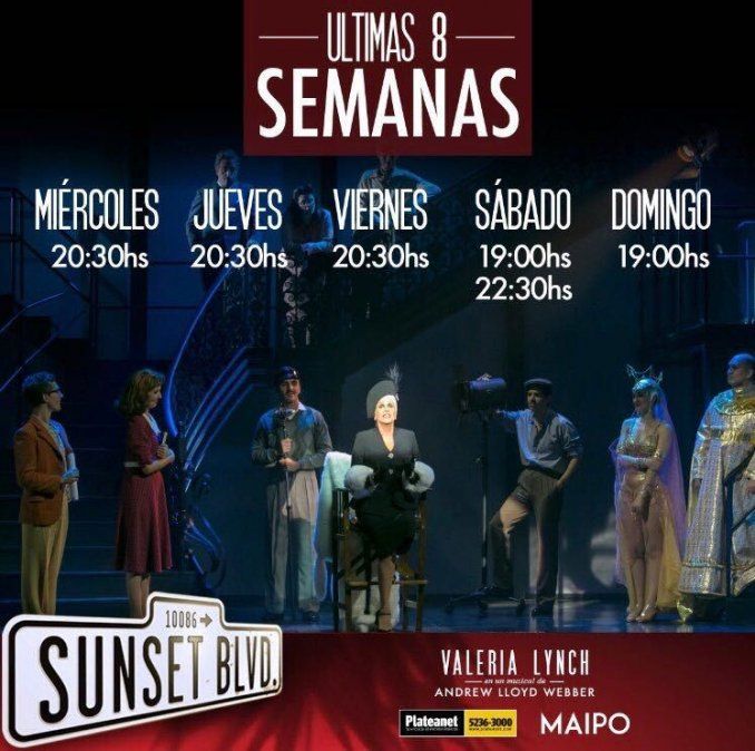"Sunset Boulevard" es sin dudas el musical más lujoso actualmente en la cartelera porteña, con una puesta increíble y un elenco lleno de talento, encabezado por Valeria Lynch, acompañada por Rodolfo Vals y Mariano Chiesa.