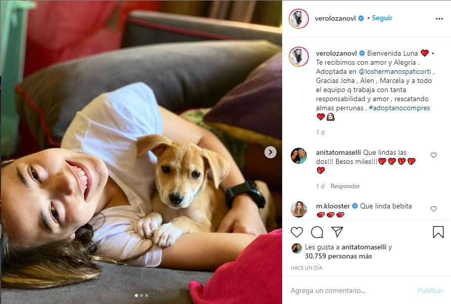 La publicación de Verónica Lozano alcanzó rápidamente más de 29.000 Me Gusta y agradó a sus fanáticos en las redes , quienes no dudaron en elogiar la decisión de haber adoptado. "¡¡¡¡Bienvenida!!!! Gracias por darle un hogar hermoso", "Que hermoso que hayan adoptado", fueron solo algunos de los mensajes que recibió la conductora.