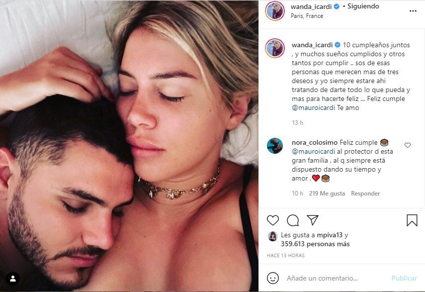 En su muro, y acompañado de una fotografía donde se ve a Icardi abrazo a su esposa Wanda Nara, la modelo escribió: “10 cumpleaños juntos, y muchos sueños cumplidos y otros tantos por cumplir”, inició a modo de balance y continuó con una declaración de amor: “Sos de esas personas que merecen más de tres deseos y yo siempre estaré ahí tratando de darte todo lo que pueda y más para hacerte feliz ... Feliz cumple @mauroicardi Te amo”, escribió Wanda.