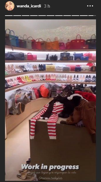 En uno de los videos se puede apreciar muchísimos estantes llenos de zapatos e incluso algunas valijas abiertas. A través de ese video Wanda Nara le envió un mensaje a su esposo Mauro Icardi: "Si ella te hace la mudanza, qué suerte tienes", escribió refiriéndose claramente a su pareja.