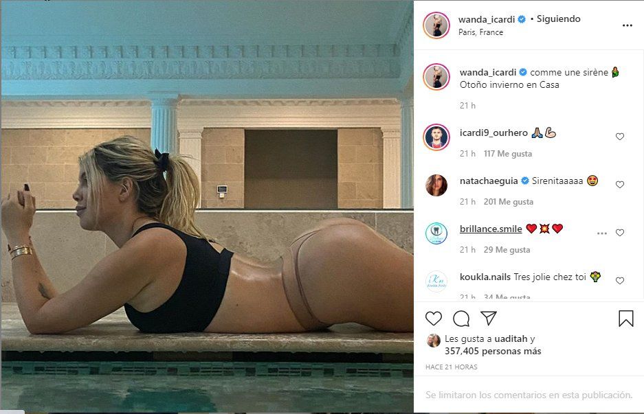 Justamente, Wanda Nara acompañó la fotografía con el epígrafe "Como una sirena. Otoño invierno en casa". Hasta este momento el posteo de la modelo ya cosecha más de 330.000 likes y una muchísimos comentarios. Wanda Nara la está luchando contra la temperatura de la capital francesa, que ya por estos días está alrededor de los 14 grados centígrados.